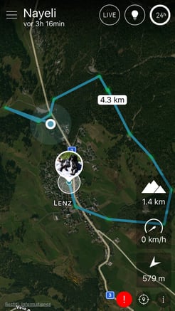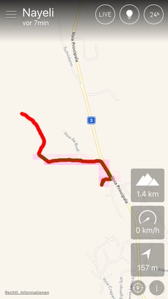 Es ist auch möglich, meinen Weg live zu verfolgen. Das stellt sich auf dem Bildschirm mit einer roten Linie dar.